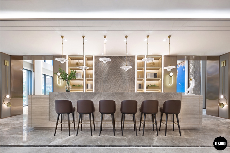 奢华质感的皮质面料,隽刻着现代的石材质感,柔软的靠枕等不同材质的交流,构成了高品质