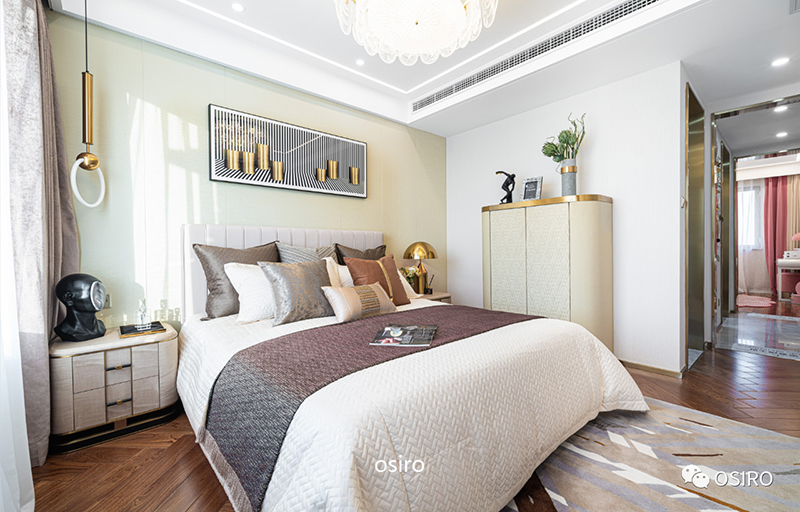 主卧设计融入当代生活的节奏与韵律,在不同中寻找相同的材质与形态元素,勾勒功能与美学相谐的设计风尚。