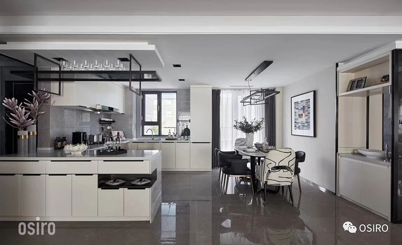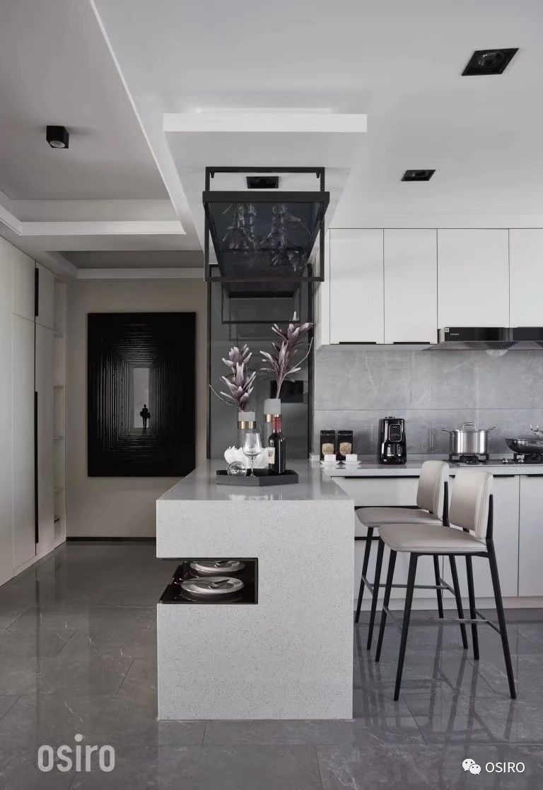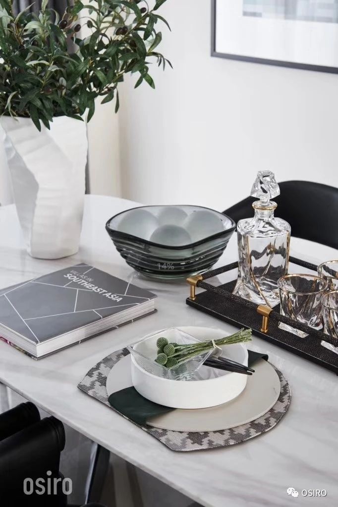 青岛东营室内设计开放式厨房总让人有一种想要展示厨艺的冲动。一束橄榄叶点亮了大理石的纯粹, 又给予了这个空间些许的盎然生机。打破常规摆放的餐桌饰品,不知不觉间多了些休闲的气息和韵味。