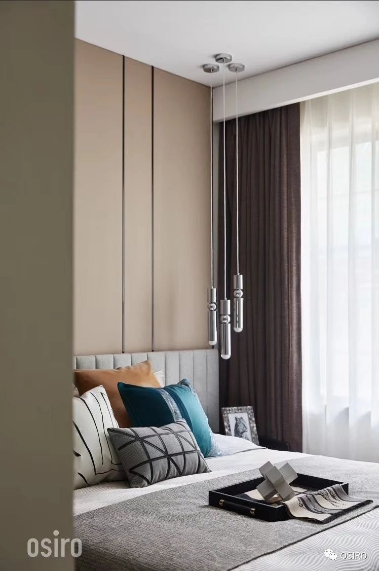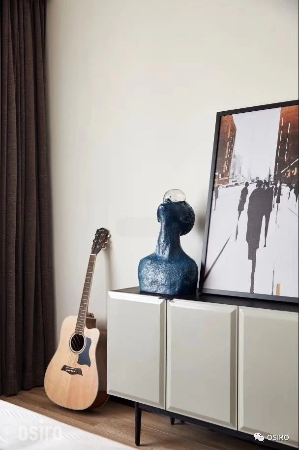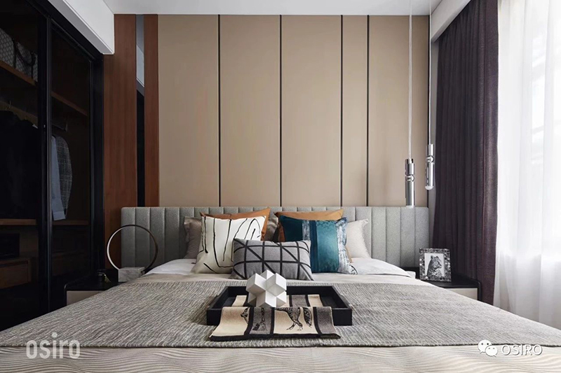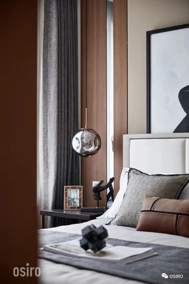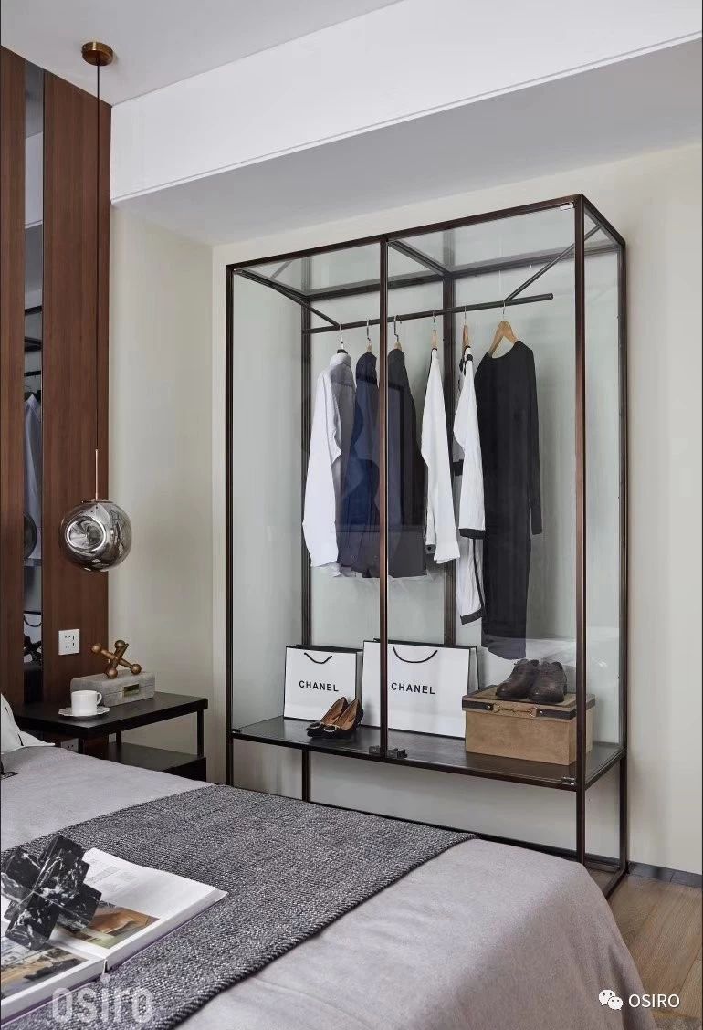 大幅装饰画竖立在床头后面,使整个空间既洒脱又安逸,具有现代简约风格的通透式玻璃东营衣柜, 视觉上拉大了空间面积,青岛室内设计在整体搭配上又更具时尚现代气息。