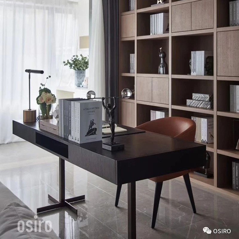书架上的饰品多而不乱,摆位上排列有序,烘托整体格调,营造惬意舒适的家居氛围。
