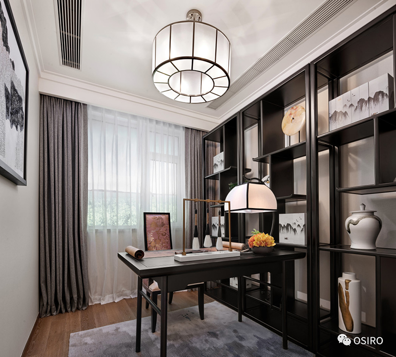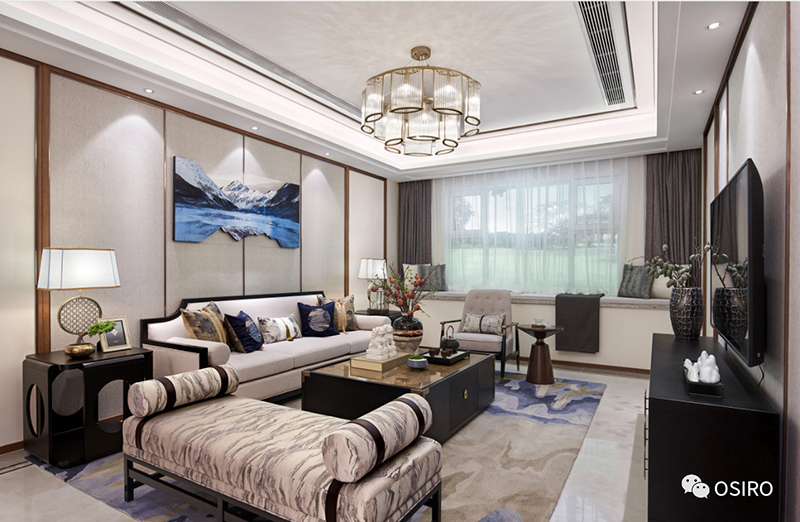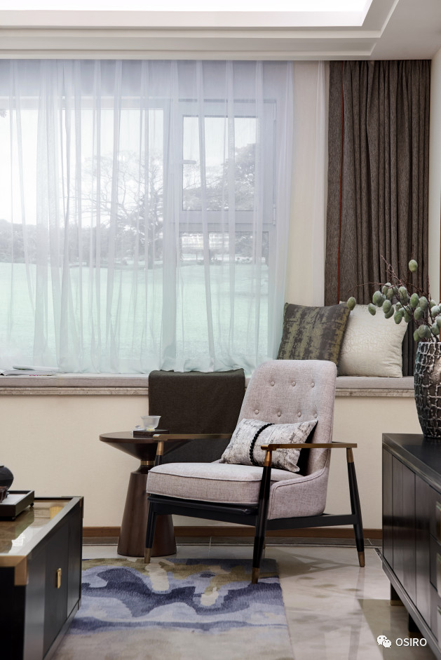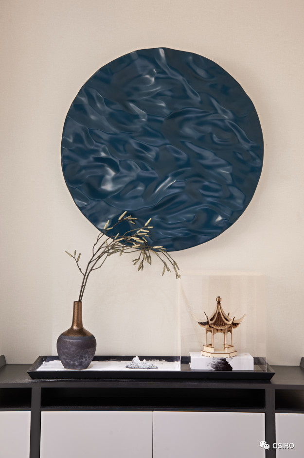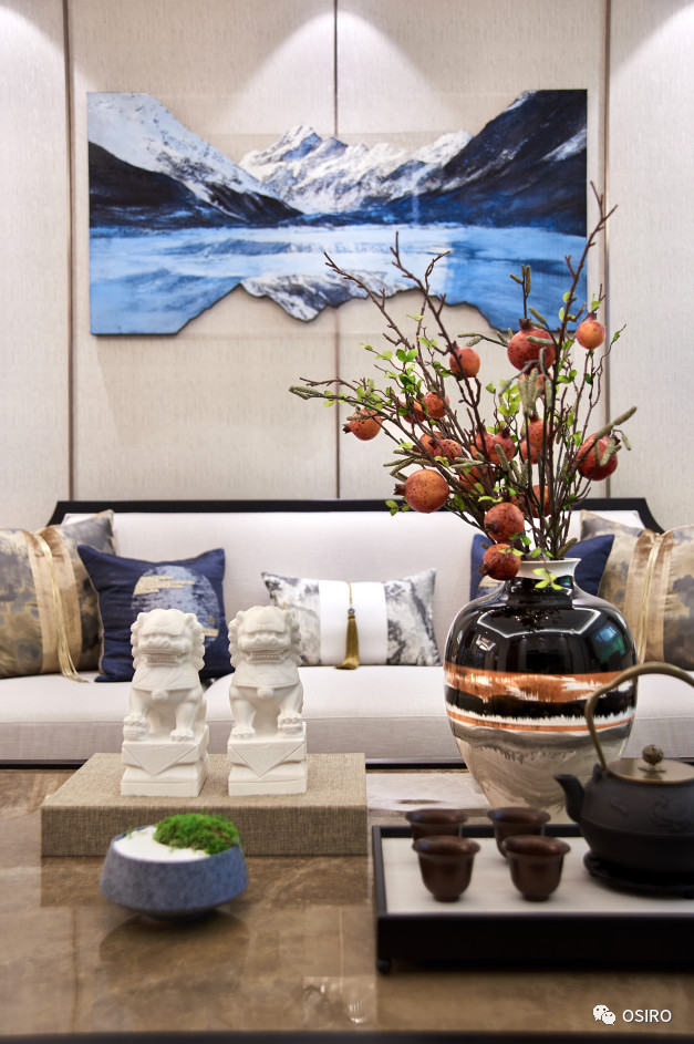 青岛东营空间设计上体现了现代中式风格简洁极致的细节美感,软装配饰的精心搭配, 极具质感的材质和面料,营造出空间独有的底蕴和艺术情怀。