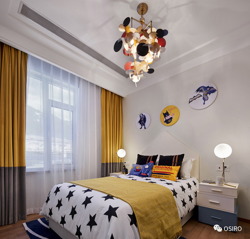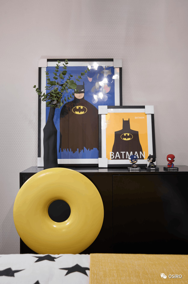 儿童房设计以漫威为主题,空间色调以黄色为跳色充满活力和童趣,