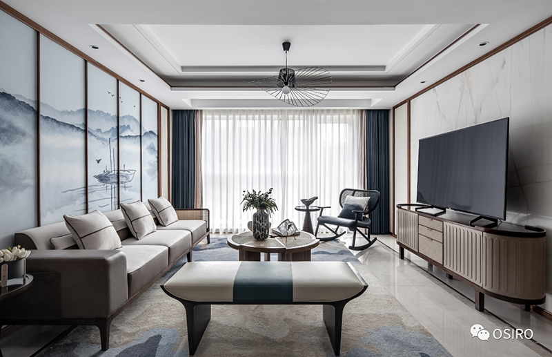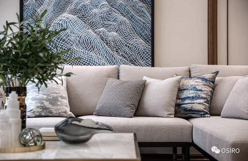 几何元素的现代,搭配米色、灰色的沉稳,皮与布的结合碰撞出高级质感。