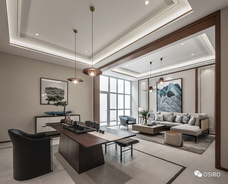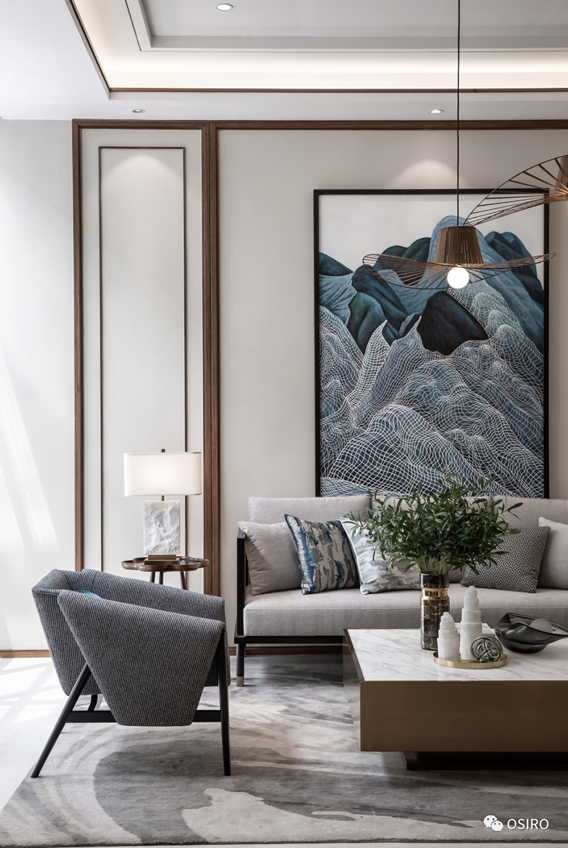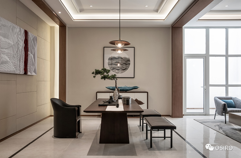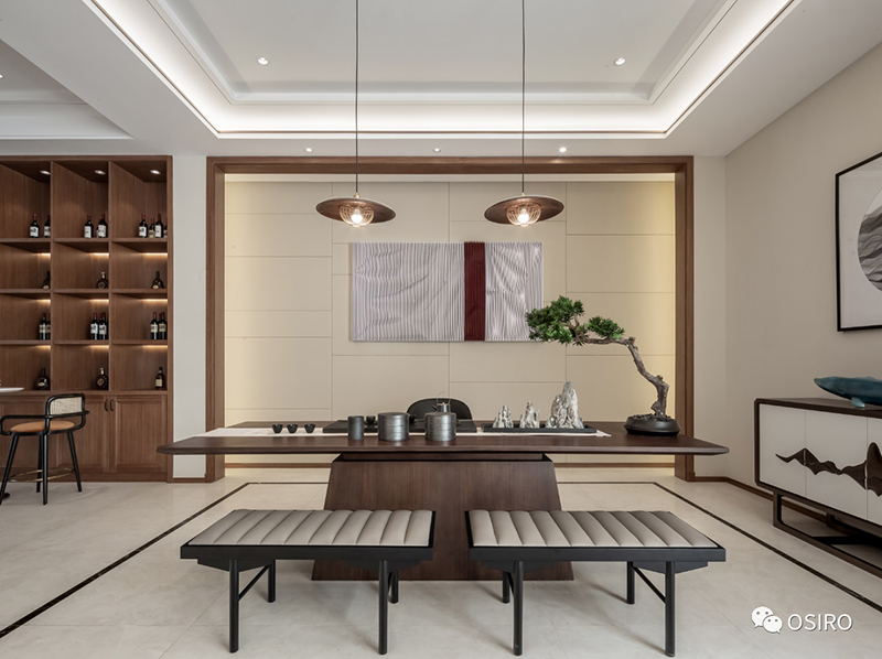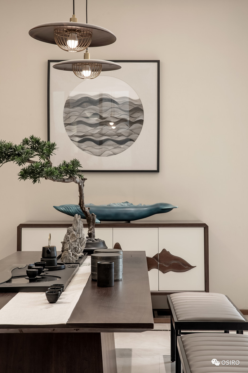 移步换境,豁然开朗,精致摆设宛然如画,静中生趣。地下室,不再是传统储物的空间,而恰似一几一椅一榻的雅舍。置身于厅中,如同待月迎风,仿佛人在画中,画在设计者心中。
