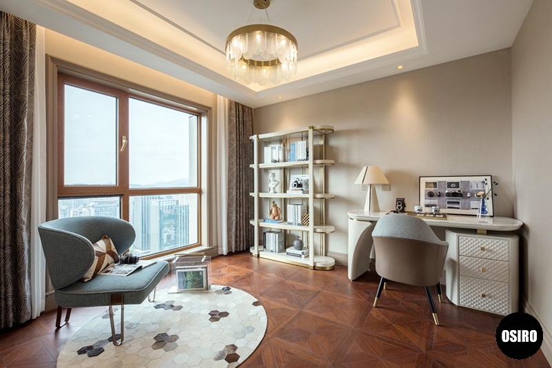 书房沿用了客厅一贯的风格,灰白色系让整个空间简单而利落。