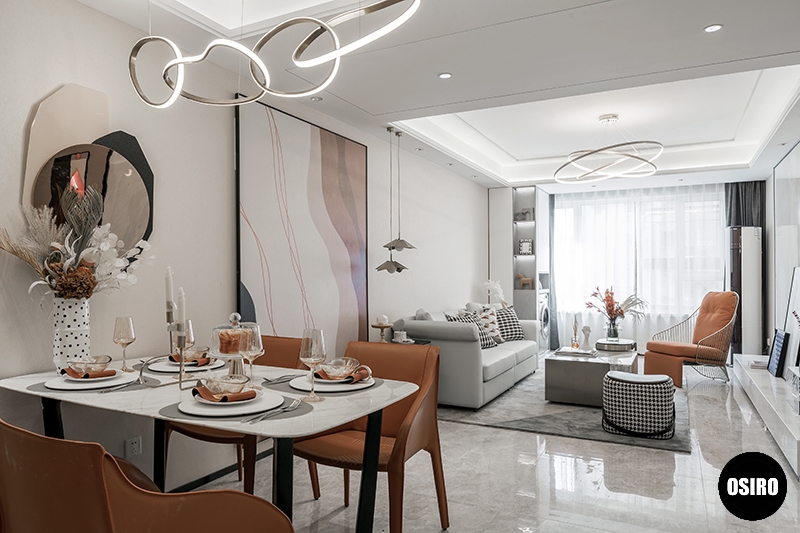 青岛软装设计入户为敞开的客餐一体化设计,