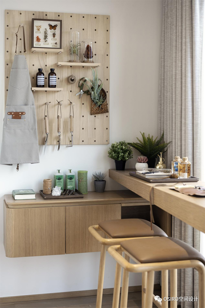 阳台上的绿植也向着阳光生机勃勃,为一以贯之的木色素雅空间点缀了生命的灵动,感受春暖花开。