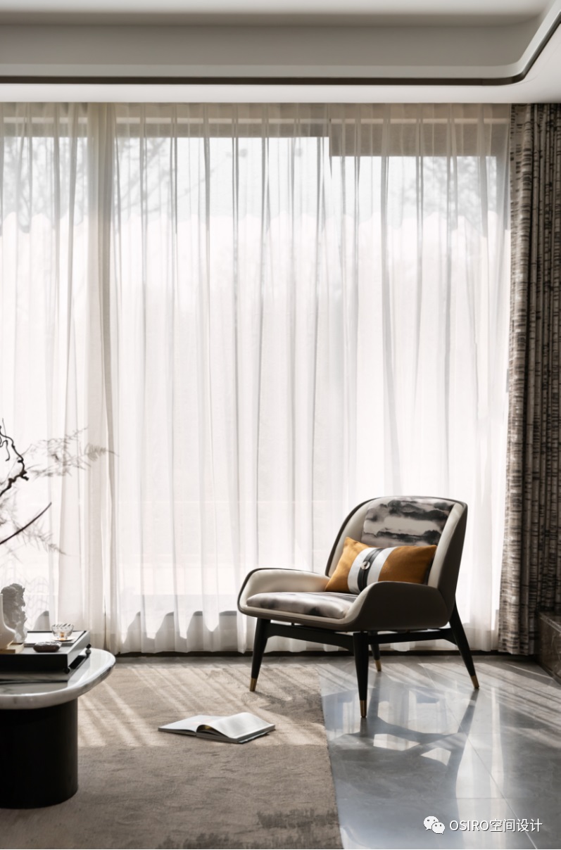 二层主卧延续了整个户型宋风雅韵的调性,以大方简洁、清逸淡雅,又极富东方感的简约陈设,阳光透过纱窗照射进来,增添层次感,丰盈抑或重塑居住者的内心秩序。