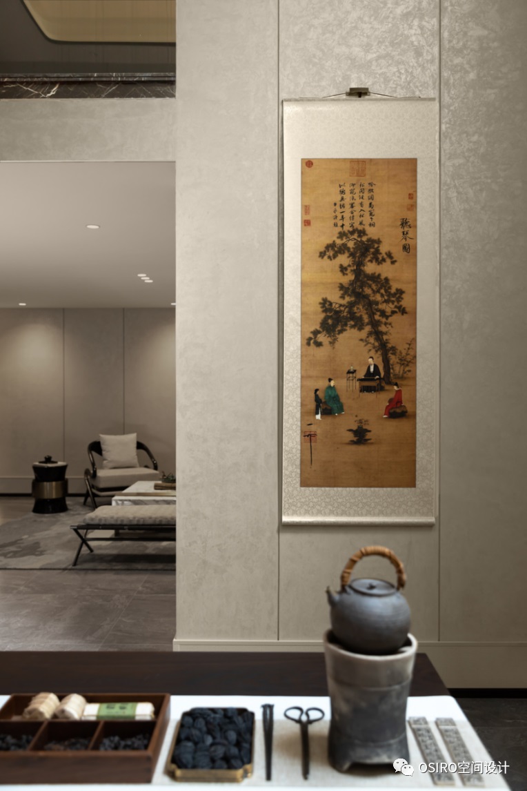 雅集是宋代士大夫的生活方式,他们观画、弈棋、烹茶,也抚琴、听风、赏花。宋人的生活情趣在这一空间中被设计师付诸想象,宛似穿越到宋词之中。