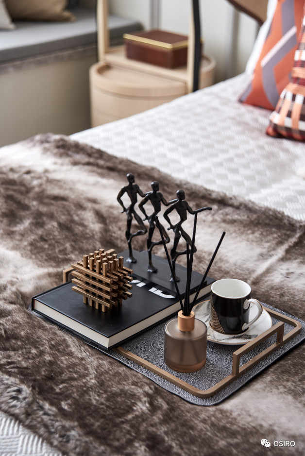 满布褶皱的牛皮艺术画在卧室中找到色调的平衡感。
