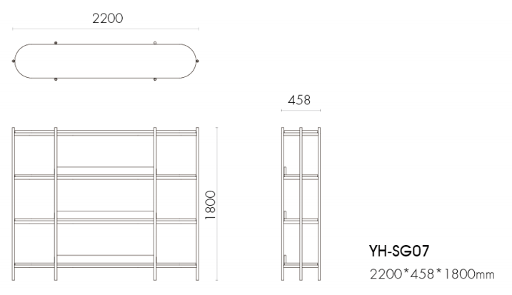 设计灵感来自于传统建筑的梁架结构。中国传统木结构建筑中的梁架,不但有支撑的作用,同时也富于结构的美。梁缘东营书架端庄典雅,富于东方传统善于留白的美学意趣,可陈放书籍,摆件等,为日常生活增添陈列美的舞台。书架层板两端采用半圆形,使设计更为安全圆润,有生命力。